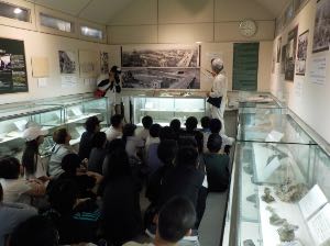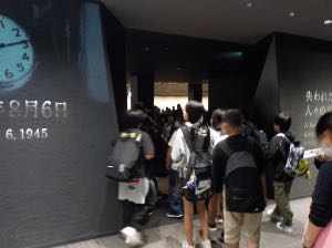 午後は平和記念資料館の見学からスタートしました。資料館内はたいへん混雑していましたが、班ごとにはぐれることなく見学できました。音声ガイドで説明を聞きながら、熱心に見学していました。