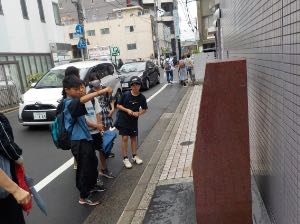 平和記念資料館を出た後は、フィールドワークと本川小学校平和資料館を見学しました。