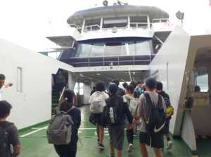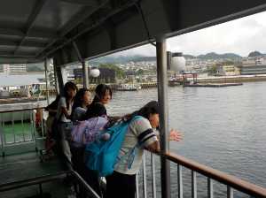 バスで宮島口まで移動し、フェリーに乗って宮島に渡りました。