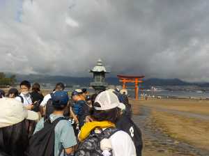 班ごとに自由に島内の宮島水族館や寺院、史跡等の見学をしたり、買い物をしたりしました。