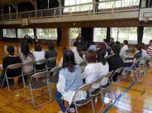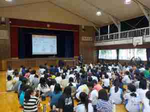 PTA人権講演会では、保護者と高学年児童が一緒に講演を聞きました。
