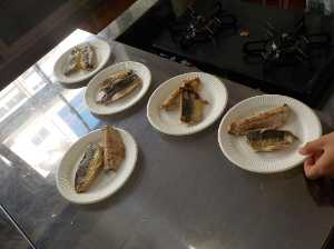 焼きあがった熱々のアジを食べました。美味しかったです。