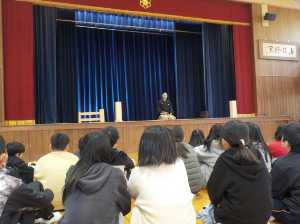 狂言を鑑賞した後は、能楽についての説明を聞きました。