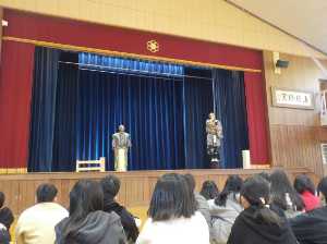 プロの狂言師の方々にお越しいただき、狂言について学びました。