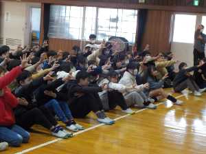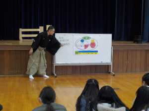 最後に「柿山伏」の中で天狗がやっていた柿を取って食べる動作をやってみたり、笑い方の練習をしたりしました。