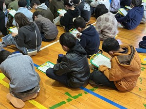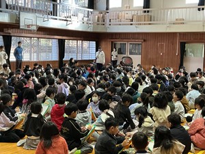 作文を聞いた後、1,2年生は近くの人と感想を話し合いました。