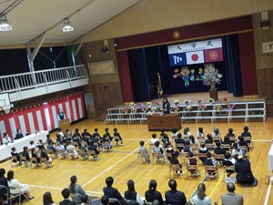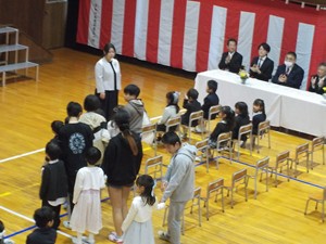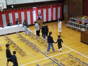 緊張しながらも期待に胸をふくらませた新入生は、6年生と一緒に体育館に入場しました。雨にも負けず、明るい表情で式に臨む子どもたちから、これからの成長が楽しみになる一日となりました。