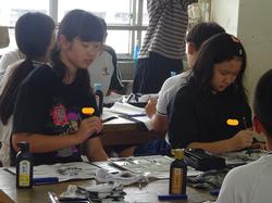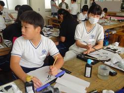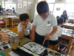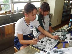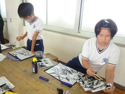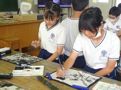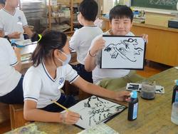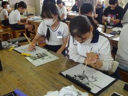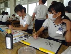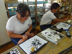 水墨画に挑戦しています。墨と水の量を工夫して濃淡をつけたり、細い筆をうまく使えるように練習しています。