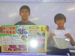 児童会は、赤い羽根の共同募金についての呼びかけでした。