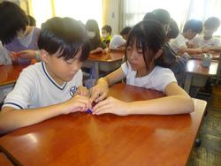 下級生で、すでに一人で鶴を折れる子もいましたね。全校生のみなさんご協力ありがとうございます。