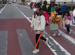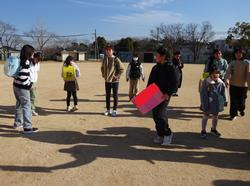 1年生を迎えに行った後、地区カードを持って他の学年のをならばせていきました。