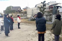 道徳の指定教材である「町の石ひ」の教材研究の一環として、講師の方をお招きした人権研修会を行いました。今回は、学校の外に出て実際に自分の足で歩いて、目で見て学ぶフィールドワーク形式の研修です。