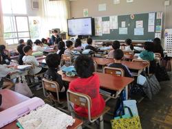 オンラインによる児童朝会が行われました。