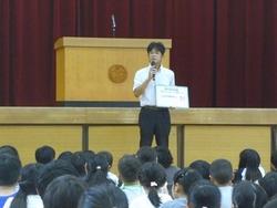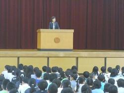「2学期は挑戦の時期としてください。心の中には“できるカモ”と“できないカモ”の2匹の鴨がいますが、“できる鴨”の方を連れて回って欲しいと思います。今の自分より、明日の自分を少しでもステップアップさせて欲しいと思います。」