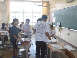 子どもたちは、夏休みの作品を大切に抱え、元気に登校してきました。