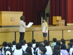 夏休みの読書感想文の入賞者への表彰がありました。おめでとうございます。