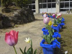 色とりどりの花が子どもたちを迎えます。
