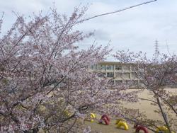 桜吹雪が舞い散る中、子どもたちが元気に登校してきました。
