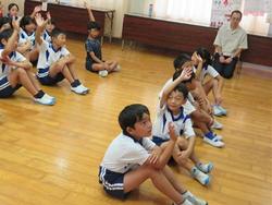 自分たちで考えた動きを取り入れ、クイズを盛り上げる工夫をしていました。