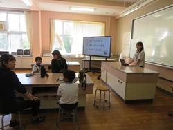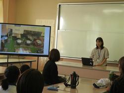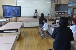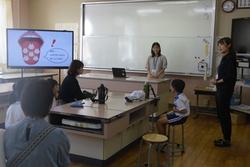 この日は、講師として吉川中学校の栄養教諭の先生に来ていただいて、給食ができるまでや食べることについてなどのお話をしていただきました。