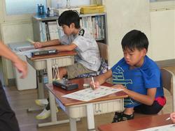 おうちの人と一緒に学習できることは、子どもたちにとってうれしいこと、今日は緊張しつつもうれしい時間を過ごす子どもたちでした。