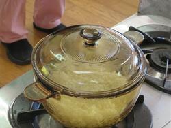 5年生は、ご飯を炊く勉強をしました。