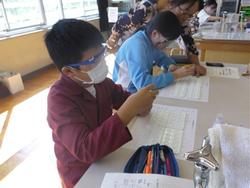 お隣の豊地小学校に招待され、5・6年生は理科の実験に挑戦することができました。