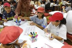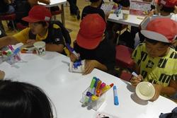 絵を描いたカップを持って、好きな具材やスープを選び、カップ麺をつくってもらいました。