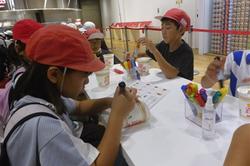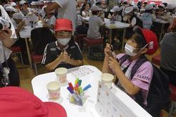 オリジナルカップ麺の出来上がりに、大満足の子どもたちです。