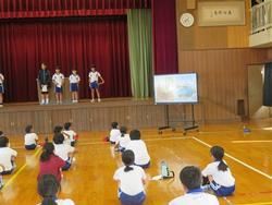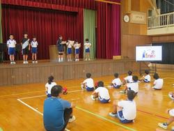毎日の放送では、放送委員会が生活目標を言い、自分の言葉で生活目標について具体的なことを話しました。