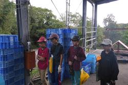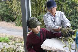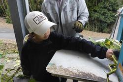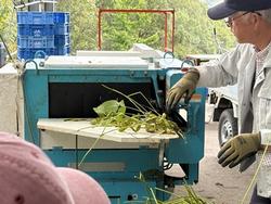 収穫したくろ枝豆を殿畑営農組合の作業所へ運びました。