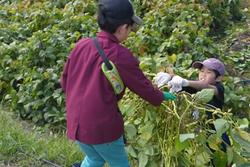 そこでは、洗う・枝から黒豆をとる・袋詰めなどの作業を見せていただきました。