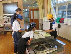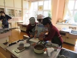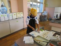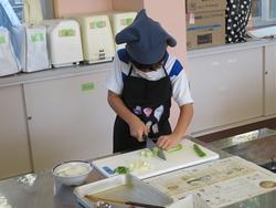 みんなで順番を守って切るところは、5年生のチームワークの良さです。