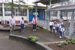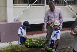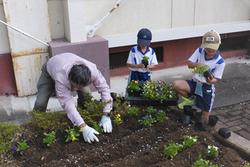 2学期も老人クラブの人に来ていただいて、お花を植えることができました。