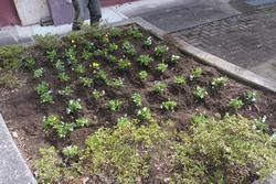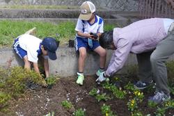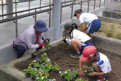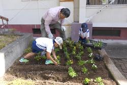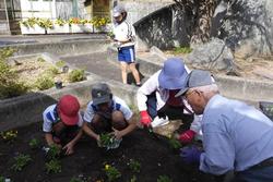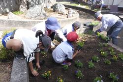 老人クラブの人といっしょにお花を植えました。(1・2年生)