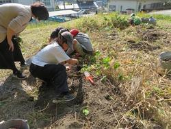 学校近くの畑では、イノシシにサツマイモを掘られて全滅だという話も聞こえていましたが、口吉川小の畑はなんとかイノシシの被害から逃れることができました。