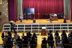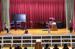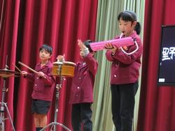 得意な力で悪者を倒した1・2年生は、喜びの演奏をしました。