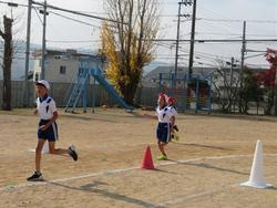 友だちが「〇〇ちゃん、がんばれ~」」と応援します。