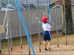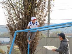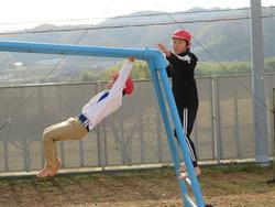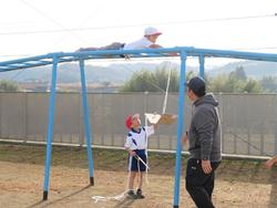 鉄の遊具、冷たかったでしょうに、「片付ける!」という強い思いに負けていません。