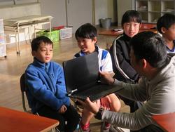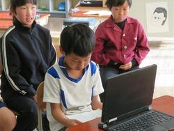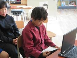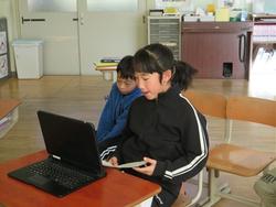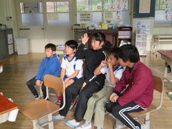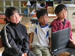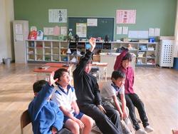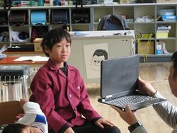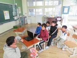今日は、リモートで豊地小学校のお友だちとつながりました。