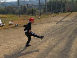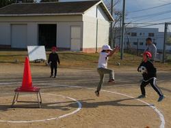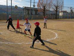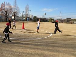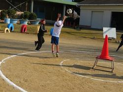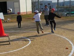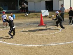 1・2年生が意欲的に取り組んでいる「ボールあてゲーム」をしているからです。