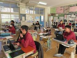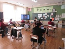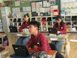 英語でこたえること、タブレットでさらに英語をマスターしていること、どれも子どもたちが堂々と学んでいる姿です。