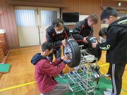 ダイハツのマークをつくる仕事、タイヤをつける仕事、塗装の仕事・・・など、これも丁寧に教えていただきました。