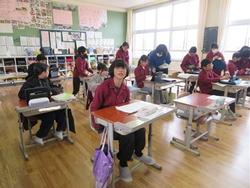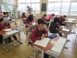 終業式や地区児童会が終わり、子どもたちは自分の教室に戻りました。