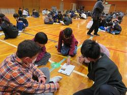 三木中学校で一緒に勉強する、三樹小学校・平田小学校・豊地小学校との交流会が8日(木)にありました。