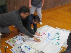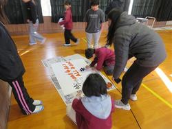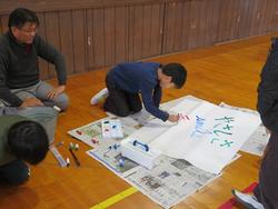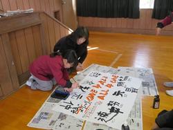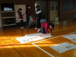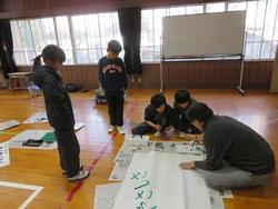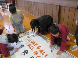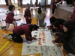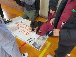 書初め大会後半は、各学級で1枚の作品を仕上げました。