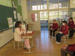 今日は、低・中・高学年に分かれて、読み聞かせボランティアの方に本を読んでいただきました。