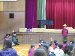 6年生は、防災について自分たちで学んだことを劇にしながらクイズ形式で伝えました。