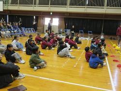 体育館で地震に遭遇するという設定での避難訓練を行いました。