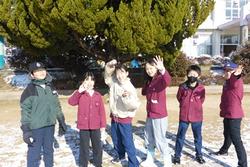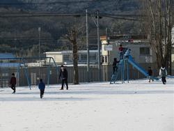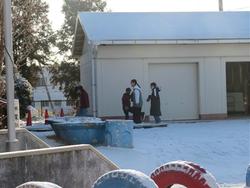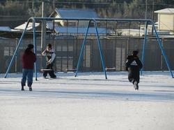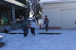 雪遊びをしに、にこにこ顔で運動場に出てきました。